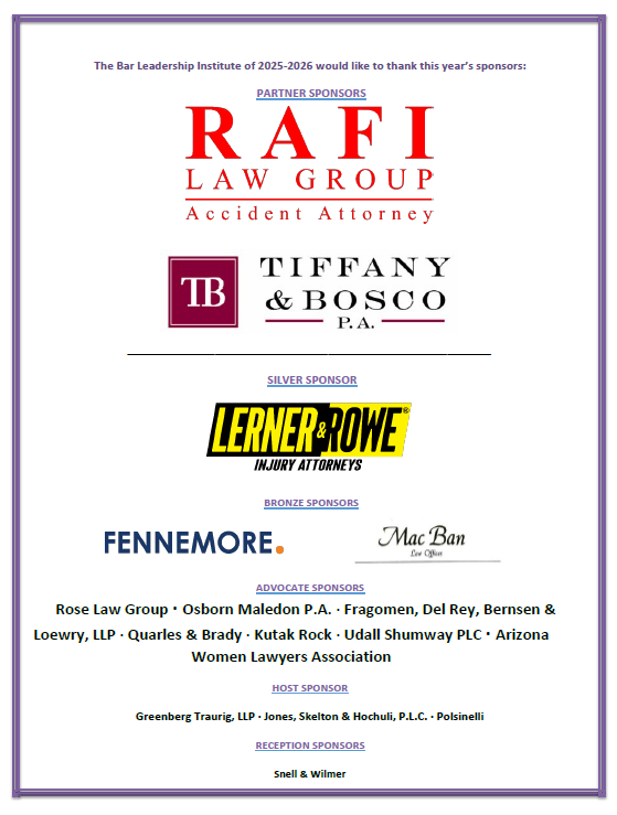 If you’re ready to grow your career, make a difference, and join a powerful network of Arizona’s top legal minds, your journey starts here. Through training, mentorship, and opportunities to lead, BLI empowers rising lawyers who will shape the future of our legal profession.